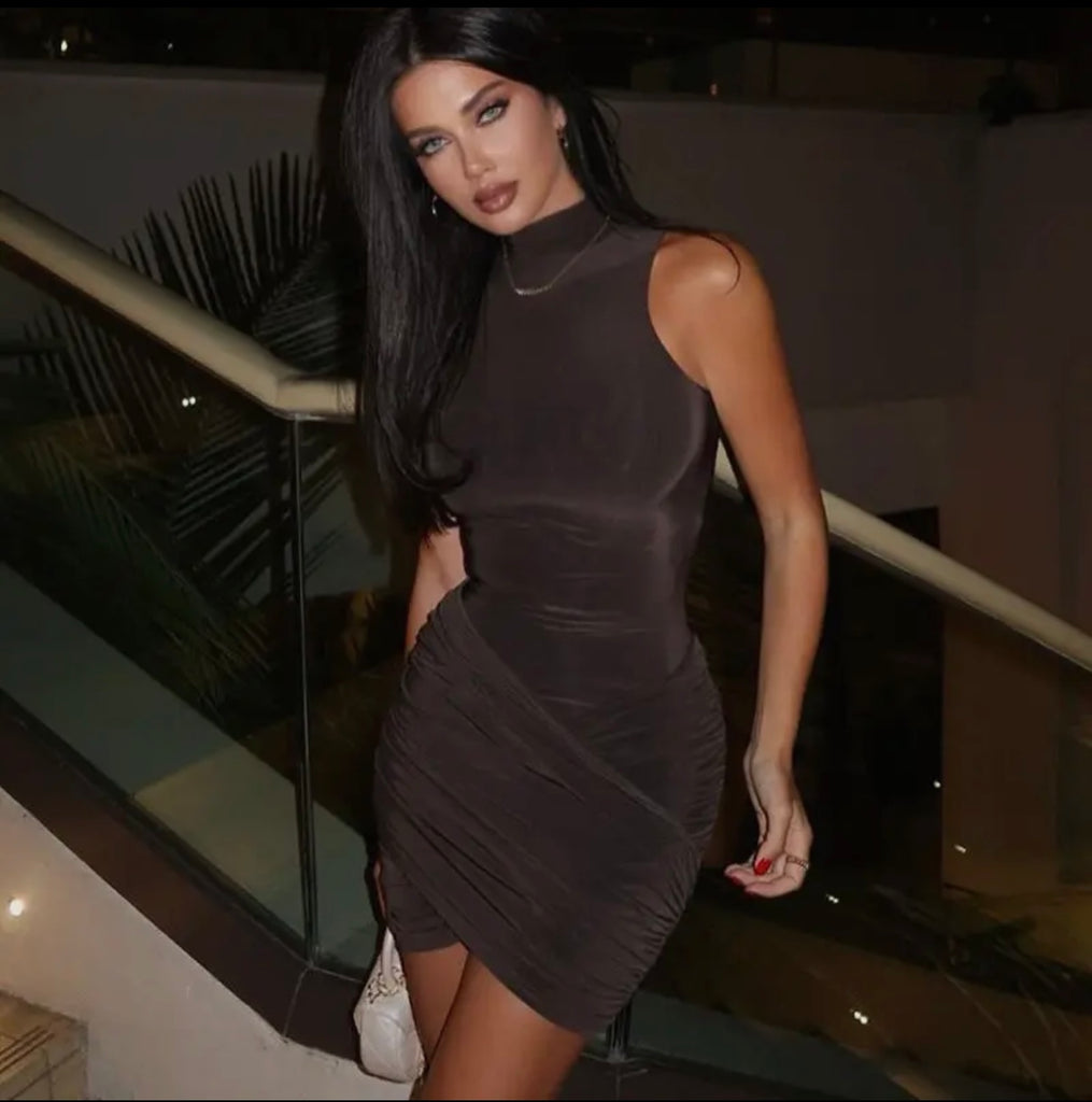 Satin Ruched Bodycon Sleeveless Mini Dress in Aqua